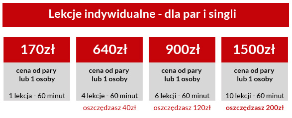 Podane ceny dotyczą 1 osoby, poza lekcjami indywidualnymi.